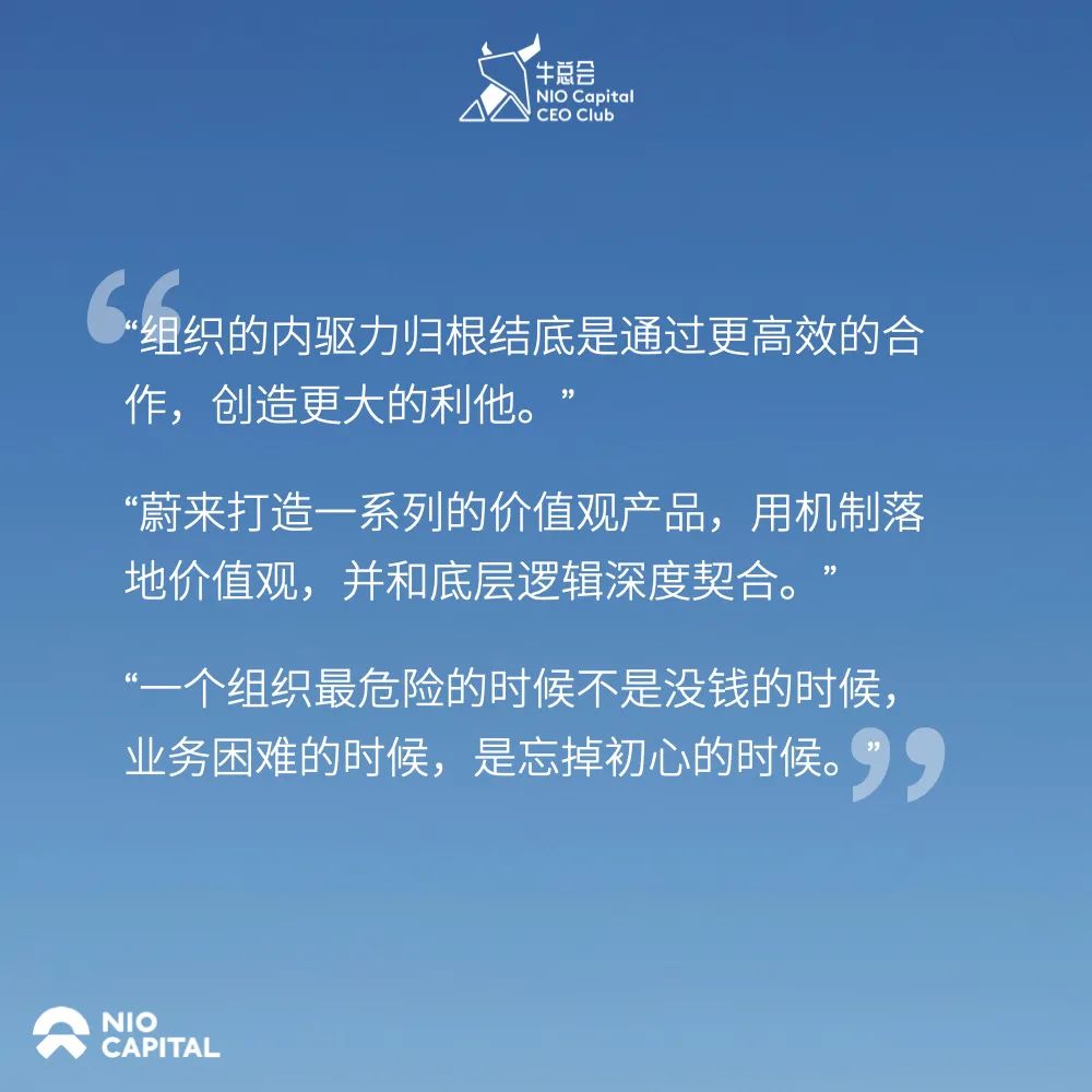 而这样的学习型聚会,就是牛总会想要致力打造的,蔚来资本成员企业家们的向上社群。在接下来,也会有更多的成员企业作为东道主,邀请我们的企业家/创业咖们加入一起探讨创业心得和经营管理之道。用新思,启发新知。